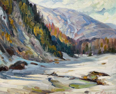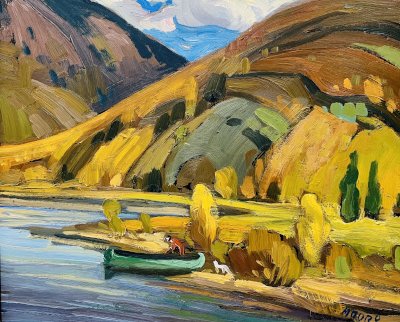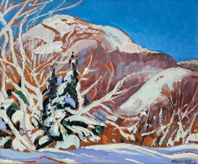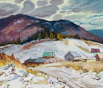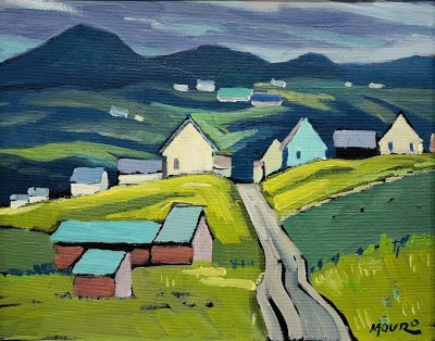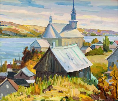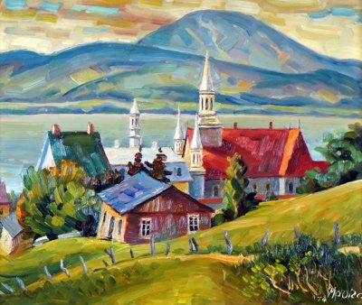 When he arrived in Canada in 1950, he produced frescos, stained-glass and mosaics for churches in Quebec and other provinces. He began showing his landscapes in the early 1960’s with shows at the Sainte-Anne-de-Beaupré Basilica Inn, Le Château Frontenac in Quebec City, and at the Quebec Academy. He has had several solo exhibitions, in Quebec City, Montreal, and Ottawa. From 1972 he exhibited at the Saint-Jean Gallery in Quebec City.