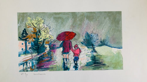Henri Masson Untitled (Road to the village) Original lithograph on Lana paper 15 x 22 in |  Henri Masson Je ne veux pas que tu meures, ma chère paroisse Lithograph 12 x 16 in Sold |  Henri Masson L’hommage aux Plouffe Lithograph 11.75 x 15.75 in sold |