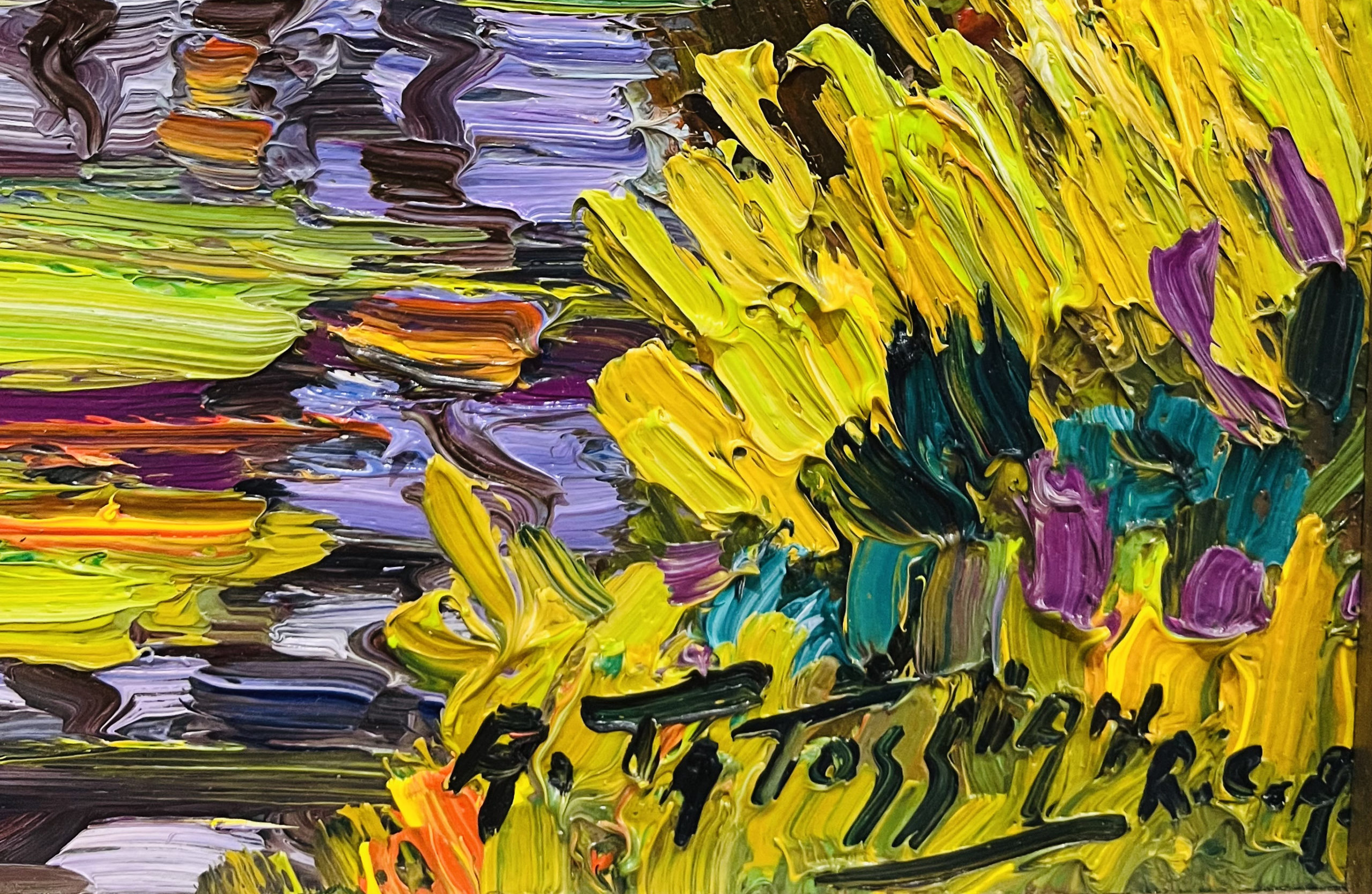 Armand Tatossian Petit ruisseau Oil on canvas 30 x 40 in Sold |  Armand Tatossian Fleurs Oil on canvas 12 x 10 in Sold |  Armand Tatossian Ruette avec personage Oil on canvas 20 x 24 in Sold |